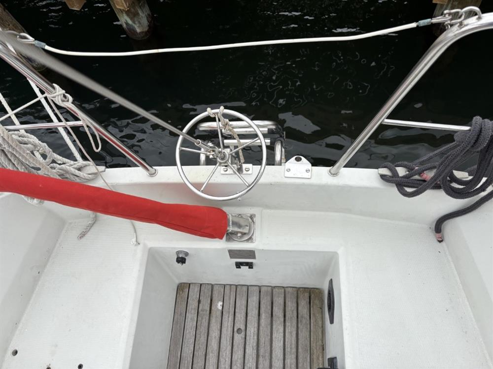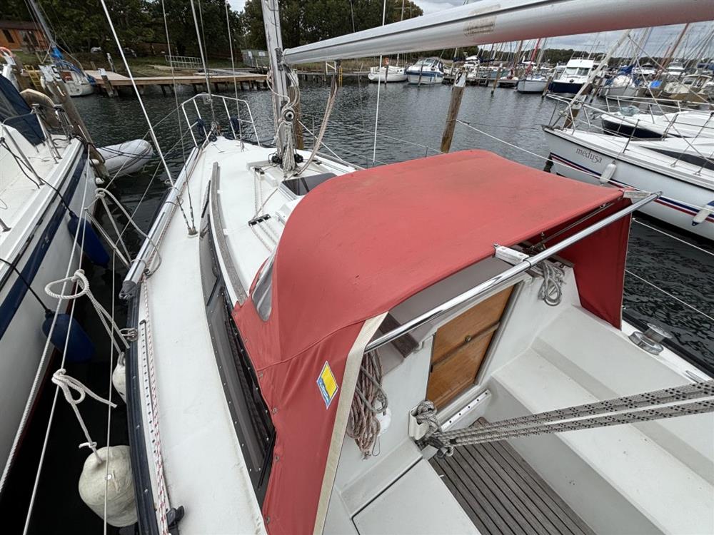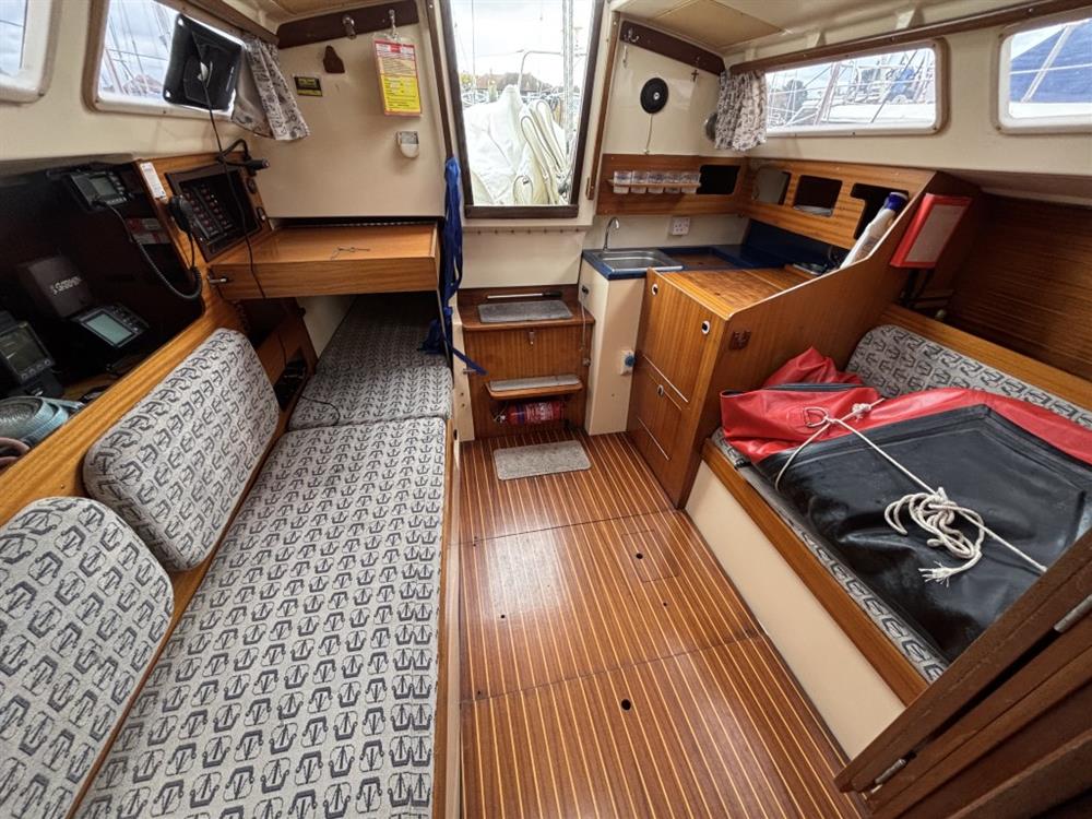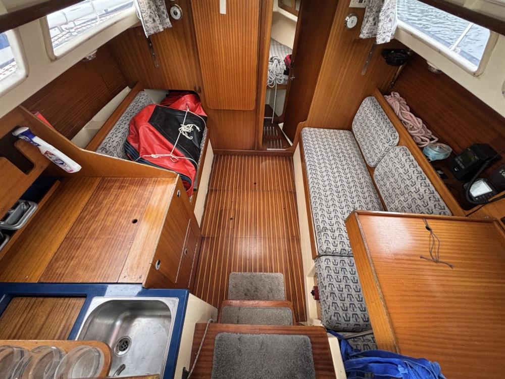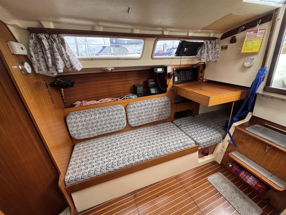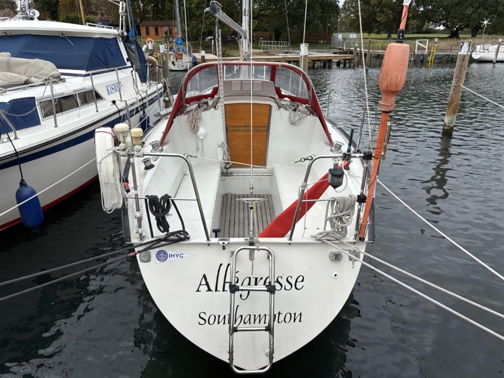 1982 Dufour 2800, sloop rig with Vetus M2 inboard engine. The Dufour 2800 was one of the yards most popular models, with ‘Allegresse’ being one of the later units produced, and more unusual with her stub keel with lifting plate. In the last two years Allegresse has been sandblasted below the waterline and protected with Gelshield 200, had the mast down to be repainted with aluminium protector and had new guardwires. A great boat for sailing single handed or enjoying with friends and family. Available to view by appointment at Birdham Pool Marina.