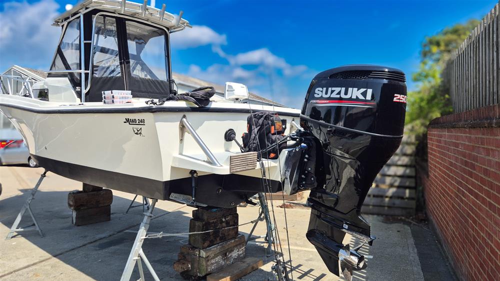 1990 Mako 248WA Tournament Edition, with 2018 Suzuki DF250hp outboard. Fully equipped and ready to ‘chase the bite’. Currently being used in the 2025 Blue Fin Tuna season. Owned since June 2023, Kraken has been a brilliant sport-fishing companion for her current owner. This classic Mako 248WA has undergone a comprehensive refit (previous owner completed in 2018) and now features modern electronics, a bow thruster, upgraded plotters, radar, and a full helm station refresh. With a Suzuki 250 (2018, ~200 hours, serviced Oct 2025), walk-around cabin, and a long roster of upgrades, it’s a turnkey weekend warrior for family cruising or serious fishing. Available to view by appointment in Hayling Island, Hampshire.