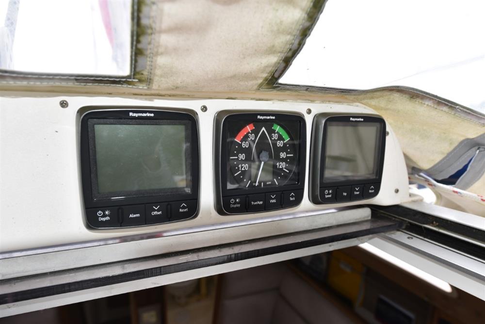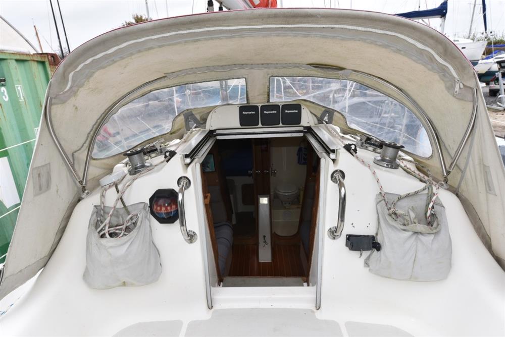 2 winches on cabin top, 2 jib/genoa sheet winches in cockpit, 2 Halyard winches on mast