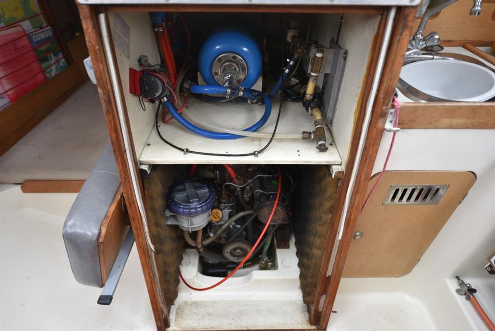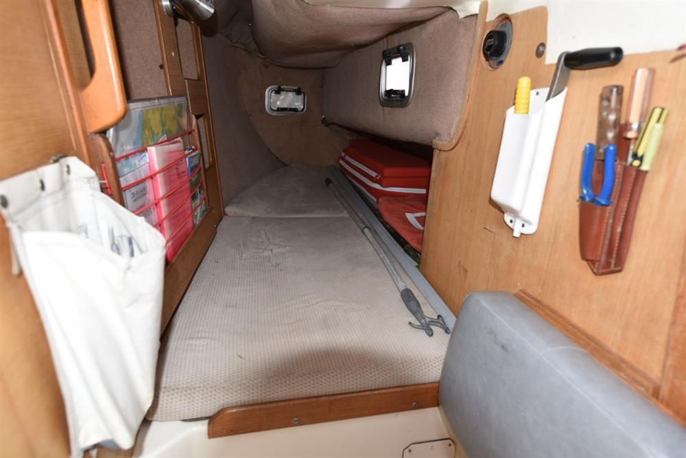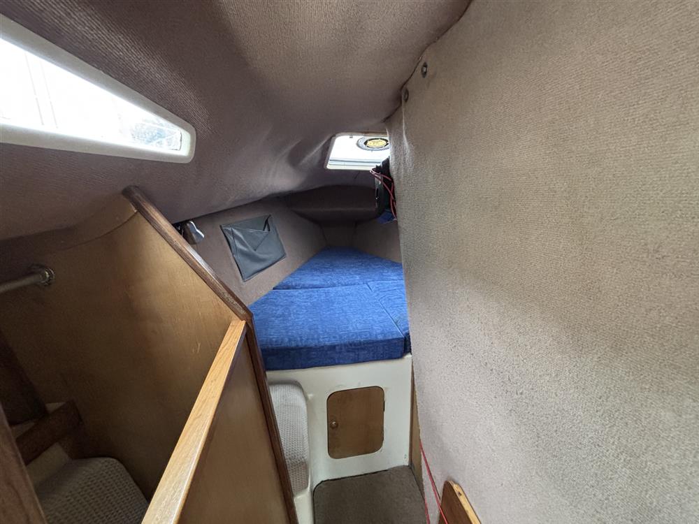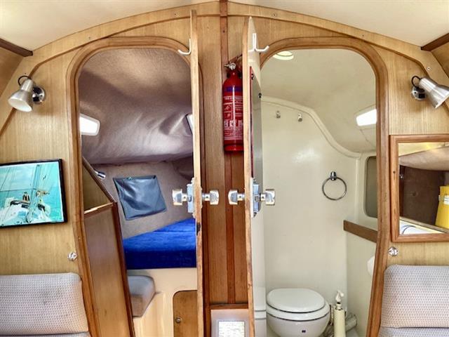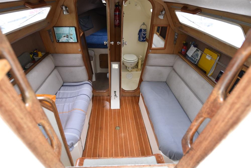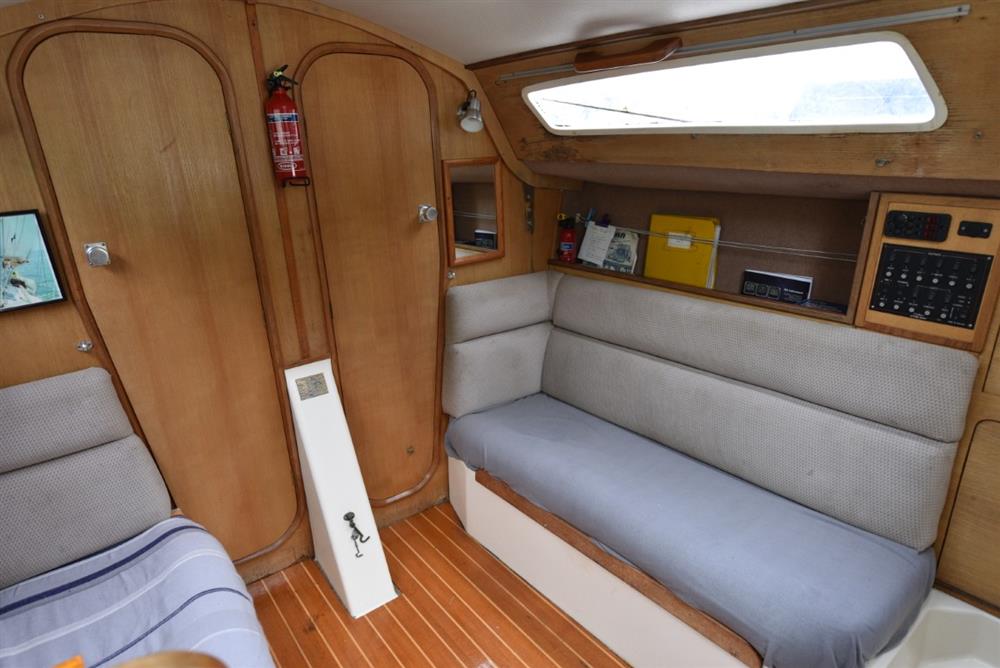 5 berths in two cabins; forward double, two singles in main saloon and large single aft