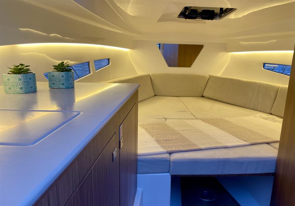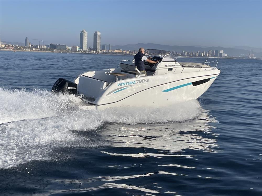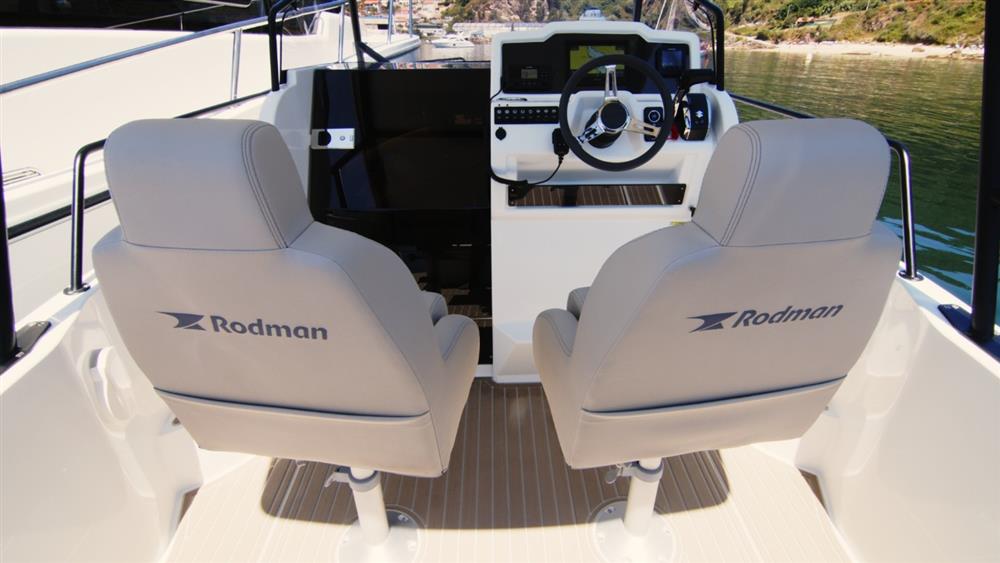 2026 Rodman 790 Ventura SD with Suzuki 200hp outboard engine. Due to arrive in the UK Spring 2026. This boat is the ideal weekender, with a comfortable seating area convertible into double bed, and also featuring marine toilet and sink in a separate heads compartment. Specification includes bow sunbathing cushions, microwave and an electric windlass. Due to arrive with us in Birdham Pool, Chichester, in April 2026. Price ex-VAT, includes UK commission, delivery and three days handover/tuition to ensure you are ready to go and enjoy your new boat with confidence.