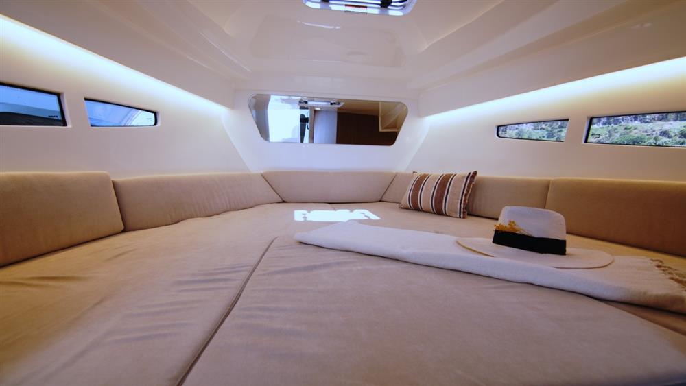 Forward sunbathing area with bow cushions with folding backrests